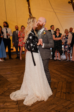 Jennie wore one of the most beautiful dresses I've ever seen - the feminine and sexy 'Louie' dress from Made With Love Bridal. The entire dress appears to be covered in tiny petals, sooooo pretty! She had simple white pumps for the day, before changing into her classic white Converse high tops and super-cool star-print leather jacket for the evening celebrations.