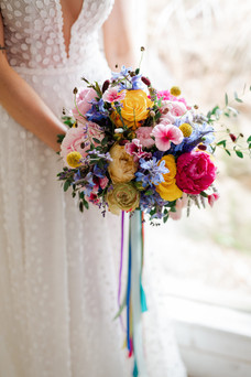 The flowers...oh, the flowers!! The couple asked Helen Raymond-Clarke for flowers with 'all the colours' and she did not disappoint! She created the most incredible, colourful bouquets and floral displays for the ceremony, cake and venue. And with Country Foxes styling the venue, everything looked absolutely perfect - from the rainbow-coloured ribbons adorning the chairs, to the bright bunting hung just about everywhere. I LOVED IT.