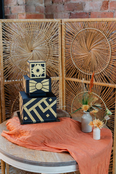 Crescent Moon and Disco Balls: Leanne and Rob exchanged vows in front of an incredibly beautiful moon-shaped arch, decorated with orange drapes, disco balls and those stunning sunset-hued flowers. This unique decor imbued the ceremony with a touch of whimsy and perfectly captured the couple's unique vision for their day.