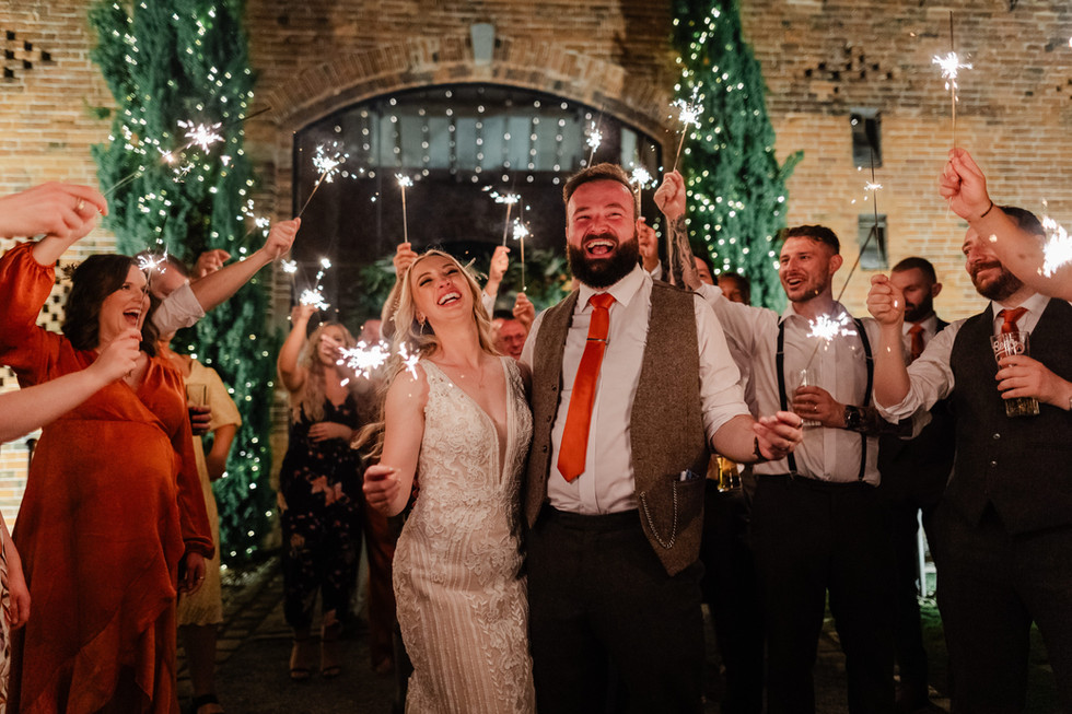 Shustoke Barn Wedding with a Moon Arch, Disco Balls and Sunset Flowers